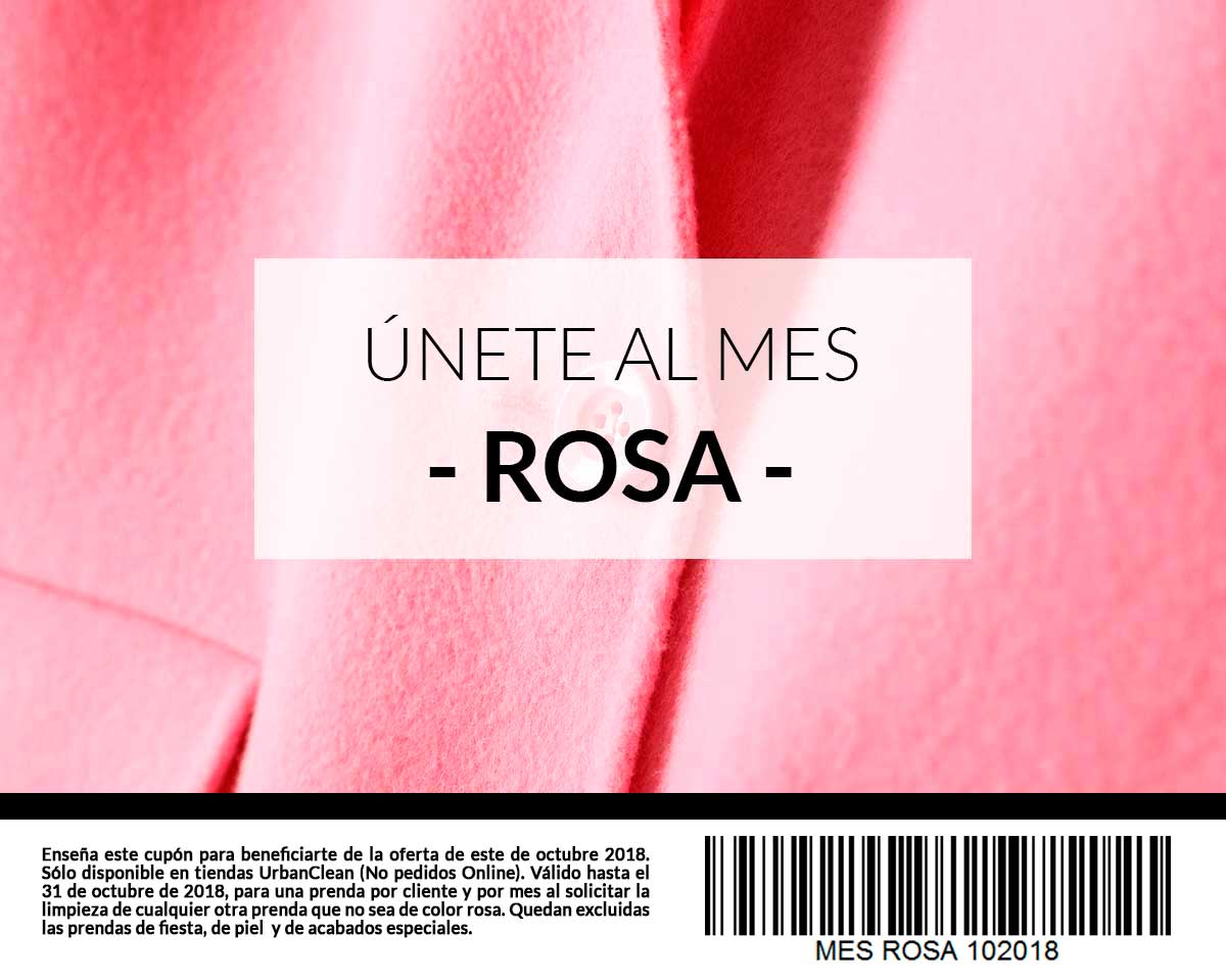 Este año UrbanClean, la tintorería online con centros propios líder en España, quiere unirse a la causa promoviendo el uso del rosa durante todo el mes. La compañía limpiará gratis durante todo el mes una prenda de este color por la limpieza de cualquier otra prenda, con esto se prende aumentar el uso de prendas rosas durante el mes, especialmente durante el día 19.